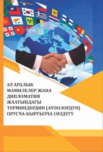 ЭЛ АРАЛЫК МАМИЛЕЛЕР ЖАНА ДИПЛОМАТИЯ ЖААТЫНДАГЫ ТЕРМИНДЕРДИН (АТООЛОРДУН) ОРУСЧА-КЫРГЫЗЧА СӨЗДҮГҮ